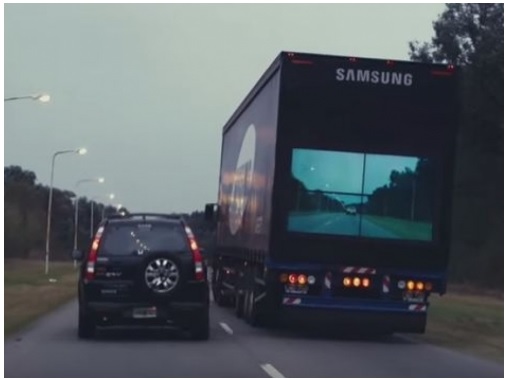 Vozaču automobila pomoglo bi kada bi znao da li iz suprtnog smjera nailazi drugo vozilo i koliko je udaljeno, a za to mu je potrebno da može da "vidi" kroz kamion koje se nalazi ispred. Samsung je upravo to i uradio - na svojim kamionima u Argentini instalirao je sistem koji omogućava da oni postanu "providni". Ova tehnologija je primjenljiva kako u dnevnim, tako i u noćnim uslovima vožnje.